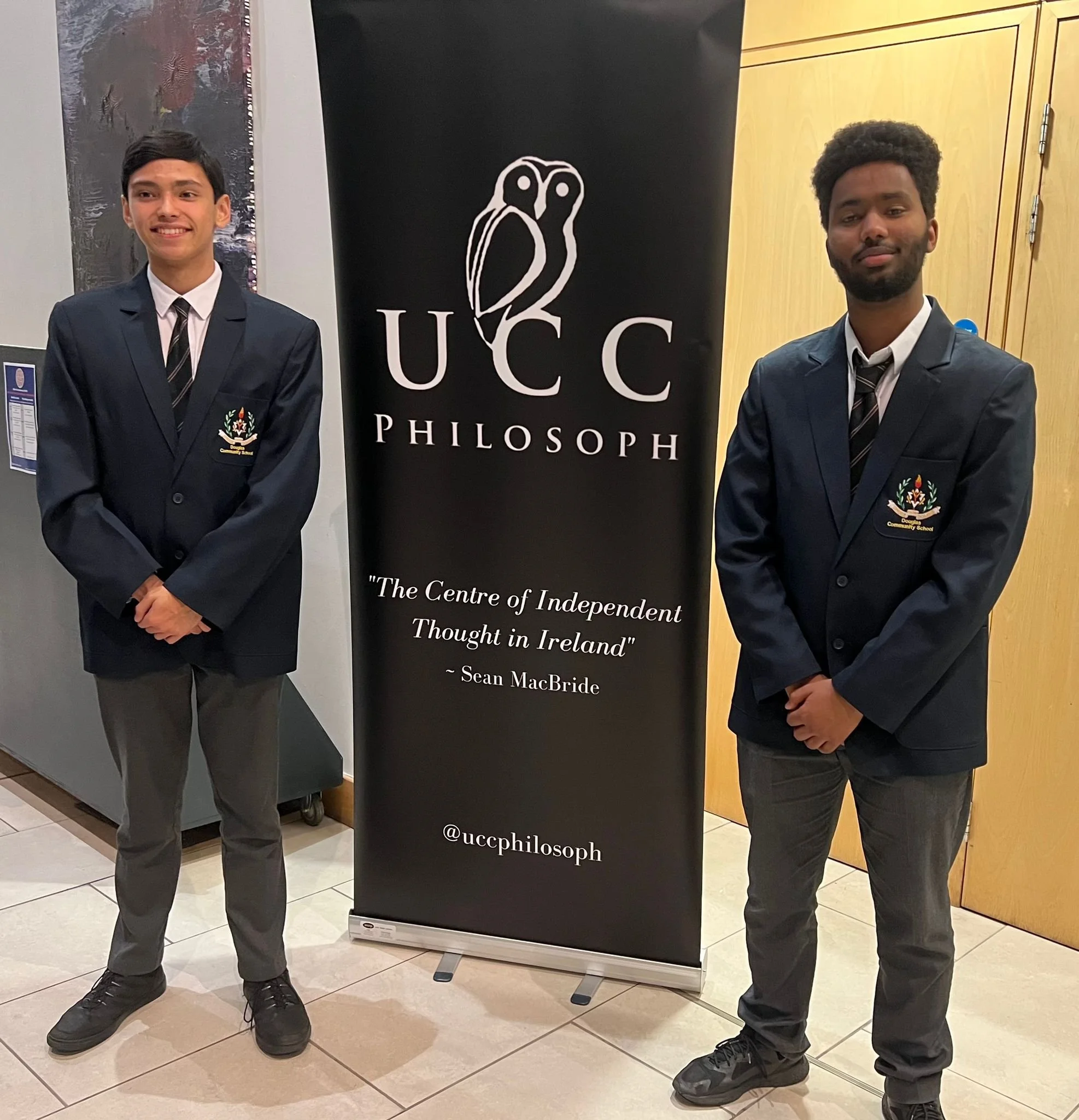 5th year students Jonathan Solomon and Manuel Lopez represented the school in the UCC Philosoph debates yesterday evening. They proposed the motion “Politics has no place in world sporting events”. Despite a very strong performance by Manuel and Jonathan, the motion was defeated. However, Jonathan will progress to the semi final as he won Best Individual Speaker on the night. Well done to all involved!