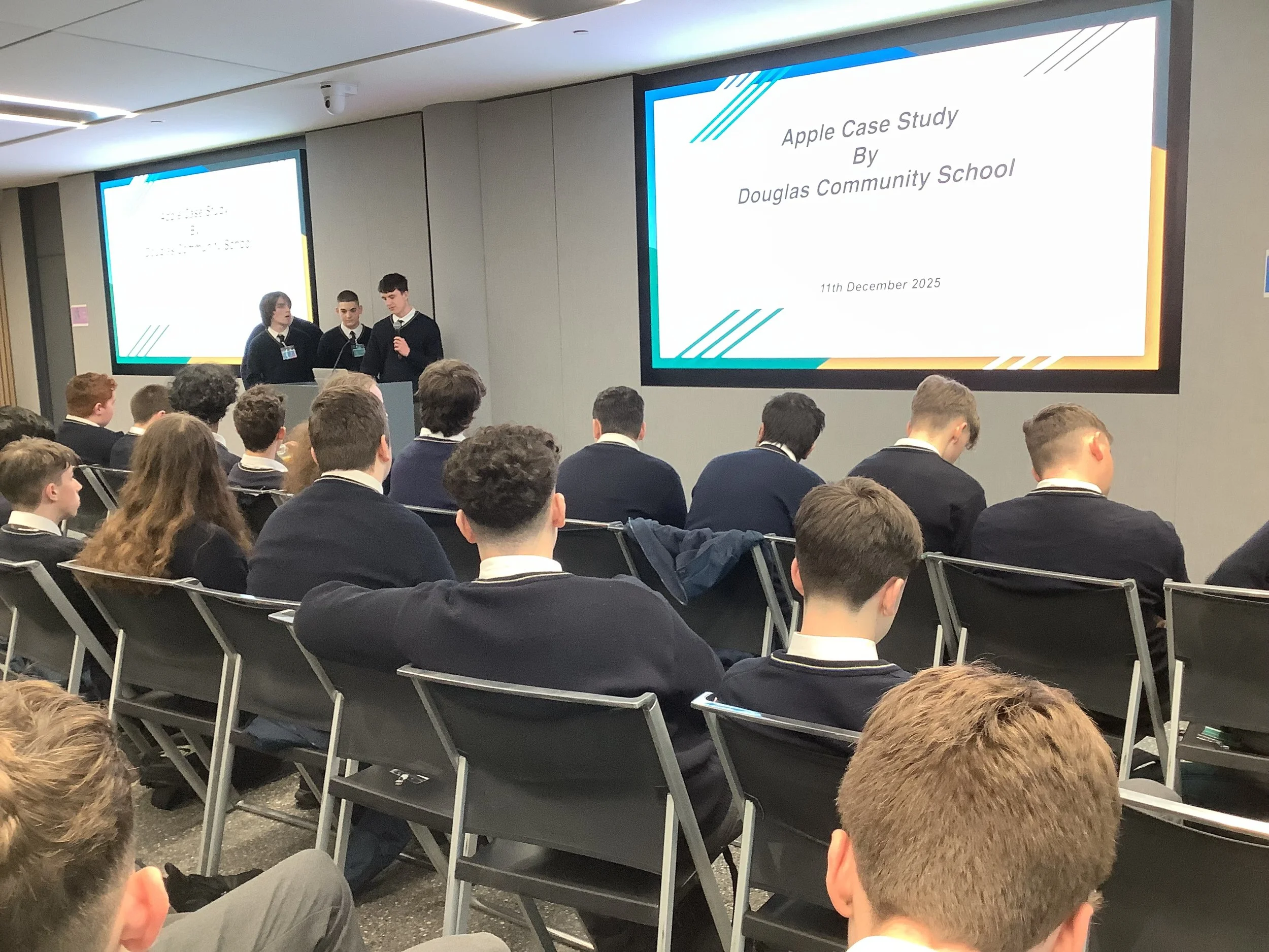 We were especially proud of Economics students Niall O’Flynn, Odhrán Brennan, Diyar Muhsinoglu, and Dáithí O'Brien-Jackson, who prepared and presented a financial case study on the economic and environmental benefits of refurbishing iPhones to the standard of new devices.