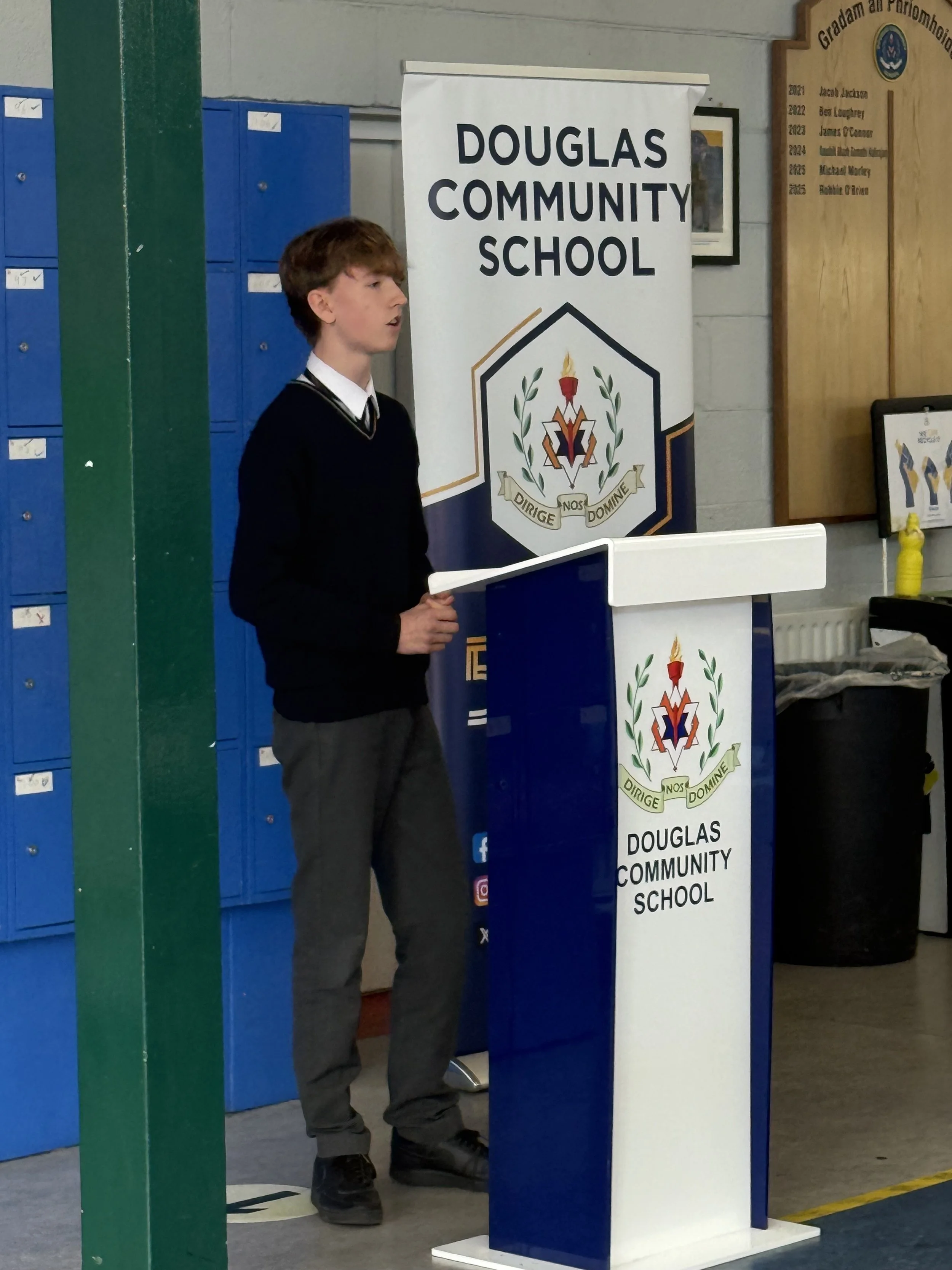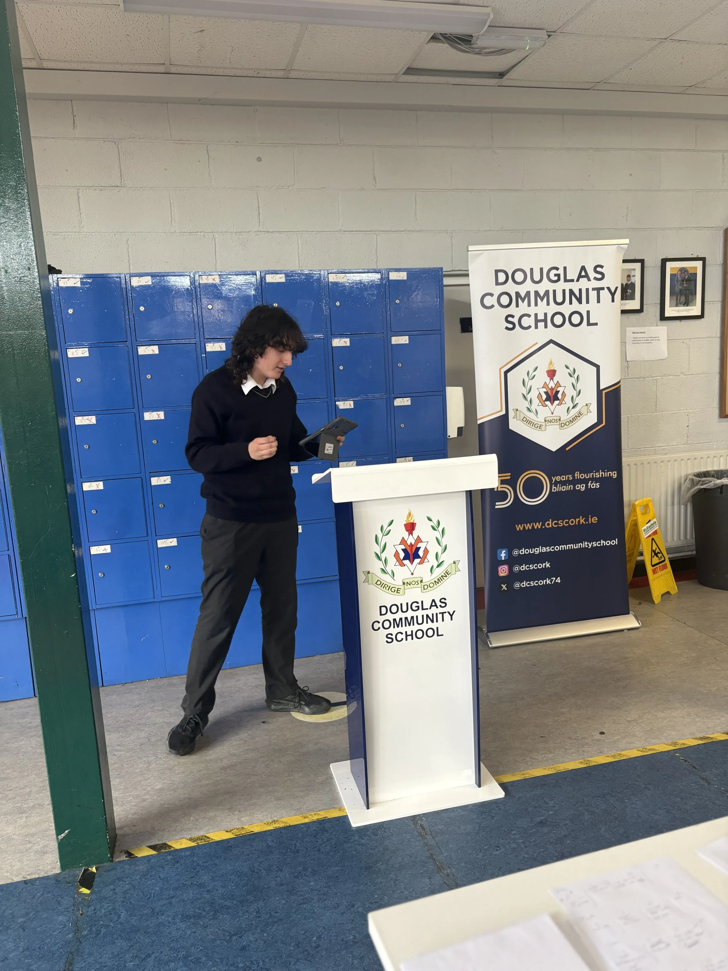The Third year public speaking competition took place last Friday. Ably adjudicated by Mr. Ted O’Sullivan and assisted by 5th year students Krish Kopal and Ciarán Canty. The theme of the competition was Politics and Society and students aired their views on war, transgender issues, the gender pay gap and capital punishment to name just a few topics. Out of 11 speakers, there could only be one winner and that was Seán OSúilleabháin. In 2nd place was Liam Devlin OMahony and in 3rd was Jude McCarthy. Well done to all involved.