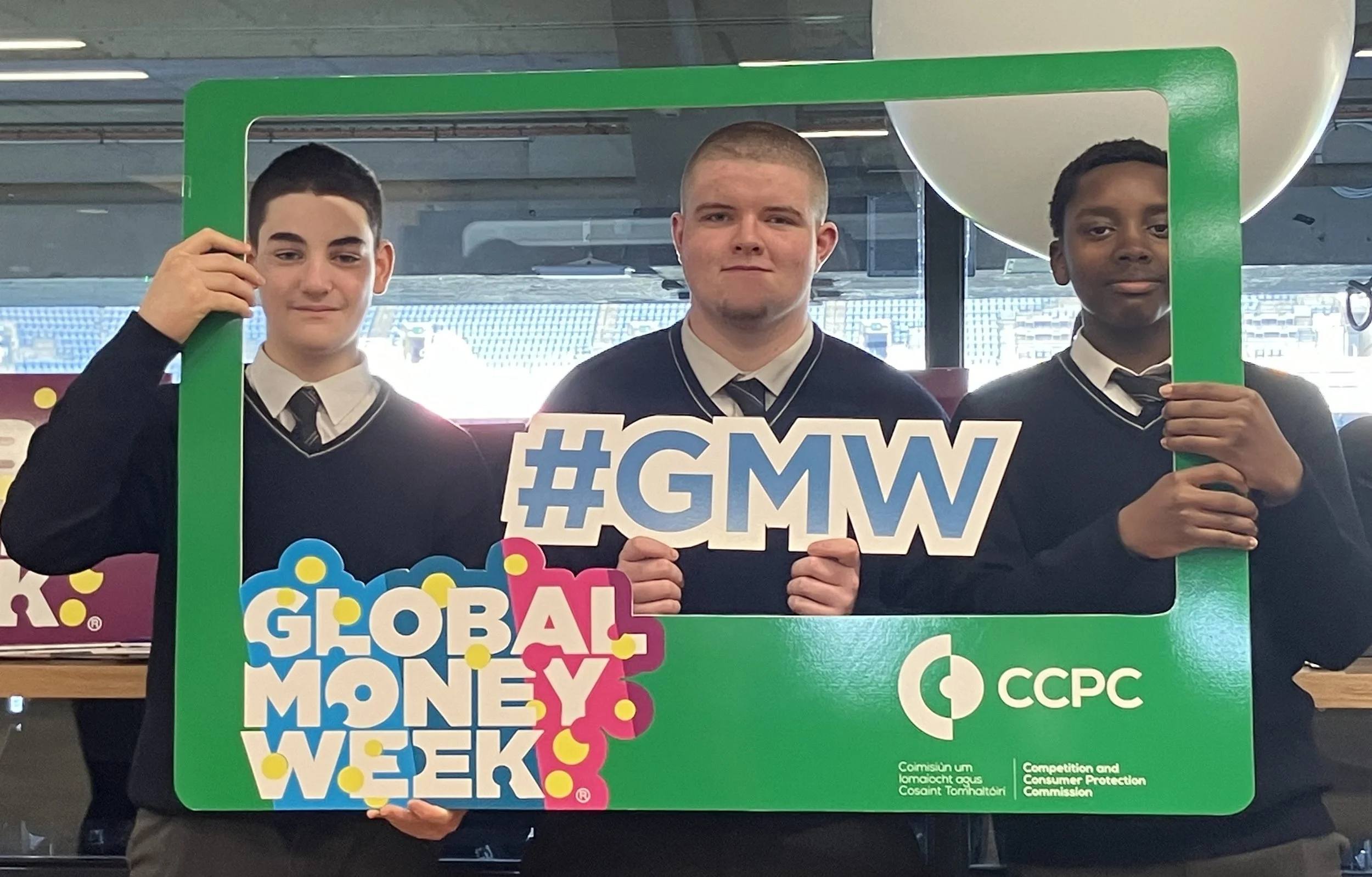 Three of our Transition Year students, Diyar Muhsinoglu, Dáithaí O'Brien-Jackson and Nicholas Hari, proudly represented our school at the launch of Global Money Week 2026 in Croke Park recently. Speakers at the event included Brian McHugh of The Competition and Consumer Protection Commission and Karl Cronin from the Money Advice and Budgeting Service. They both highlighted that financial literacy is not just about numbers but also about open and honest conversations around money, while also noting that one in three students now learn about money through social media.